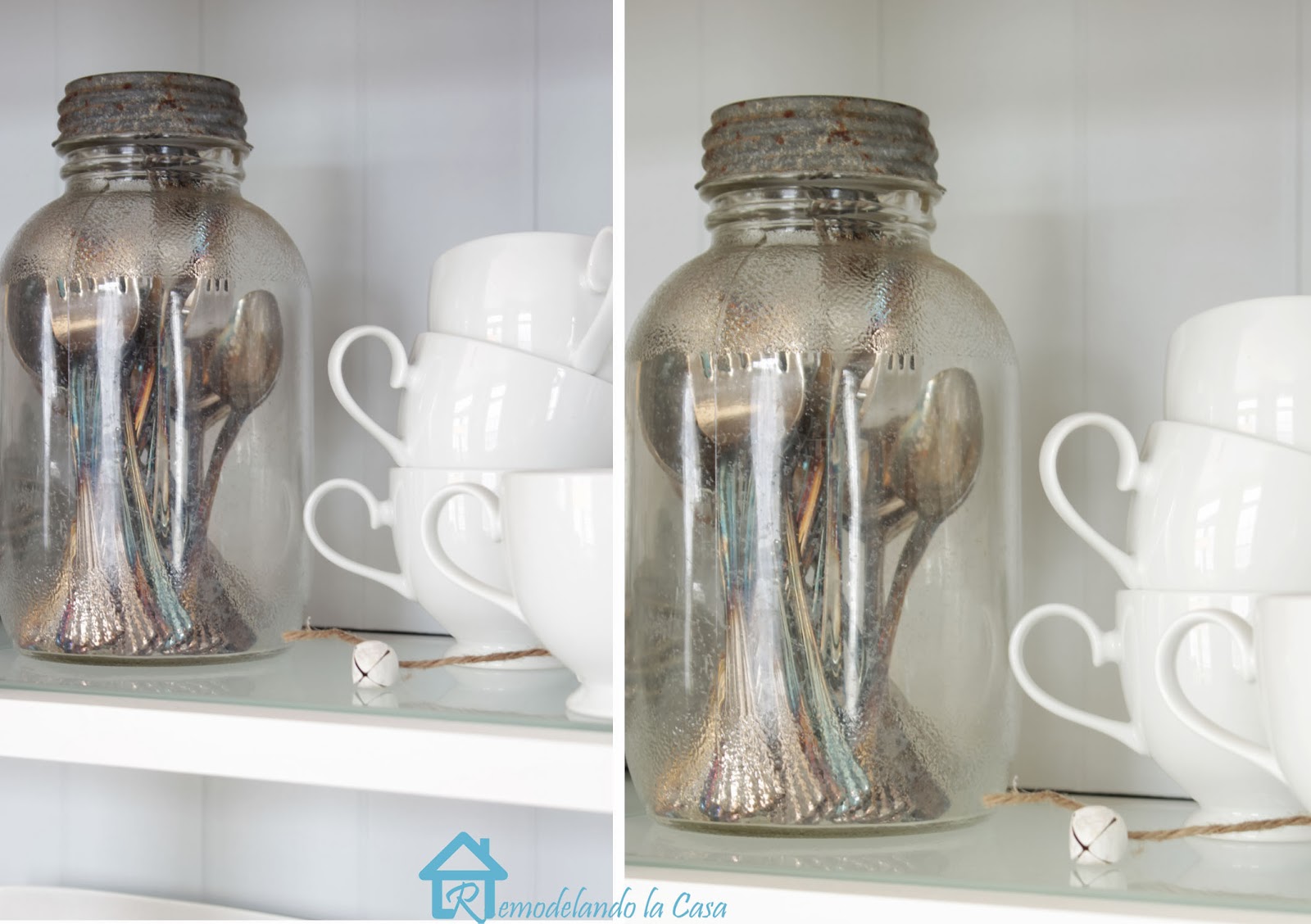 What is it that you want to show? Make the item you decide the main focus, especially on close up shots. My left picture below is showing a dead space under the shelf. It was cut away. Part of the saucers was also cut, making the old jar the most important item in this pic.