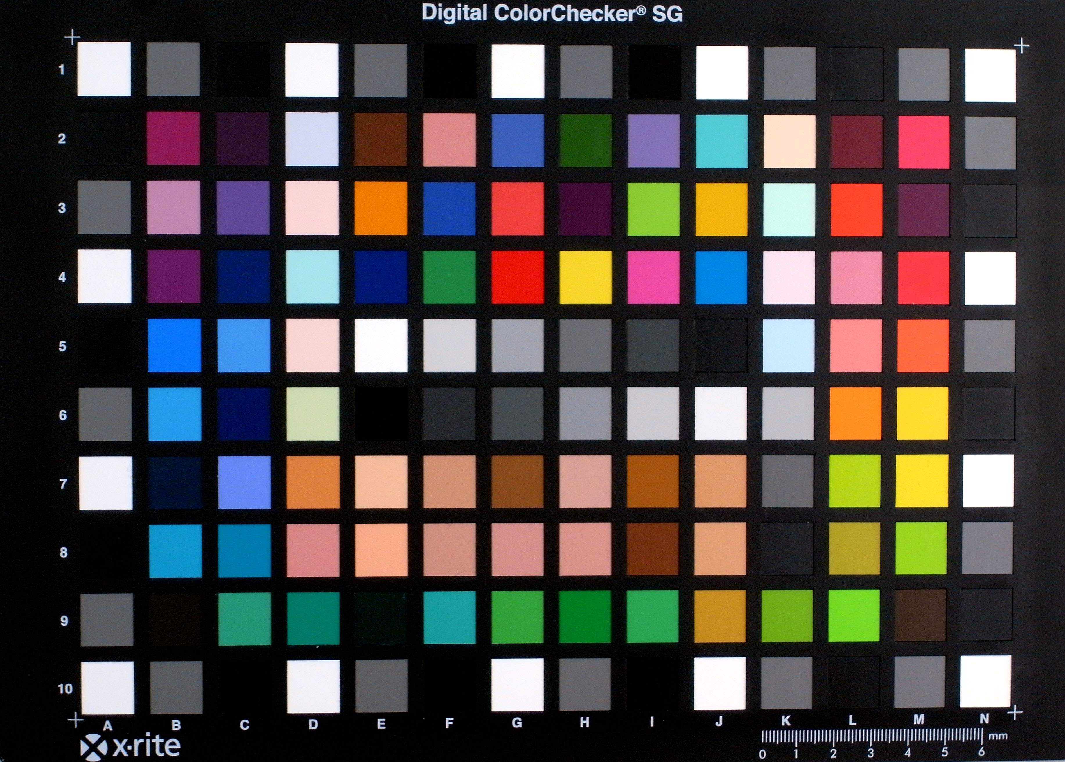 The primary blue on the colour test chart is dark suggesting an over saturation from the processor. The other blues support this theory being quite rich as well.